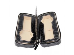 2 Slots Zippered Watch Box Traveler''s Watch Storage Case Organizer,Website:http://www.globlka.com,Leather Watch Zipper Cases
