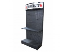 Pegboard stand,Website:http://www.xyxrack.com, also called pegboard rack or pegboard display stand.They consist of pegboard board, logo board and base.Feature1.This pegboard display stand for exhibiting, showing and promoting a variety of products2.Material: carbon steel3.Dimension: W1000 x D450 x H2000 mm 4.Thickness of board: 1.0mm5.Load capacity: 100KG.6.Silk screen Logo.(no more than three color)7.Surface treatment: Powder coated.8.Color: White, silver, black or costomized9.Style: Single side, 10.Shelves: one, two, three shelves or without shelf.11.Packing: 1pc for two carton12.Sample lead time: 7-10 days13.Lead time: Fast delivery; Within 25-35 days after the confirmed order14.Everything can be customized15.Optional: With casters16.Optional: with lighting logo17.Optional: with one extra shelf, two shelves or without shelf18.Optional: with pegboard hooksProducts advantage1.Good design for displaying drill, hardware or tool etc.2.Tough and durable steel structured 3.Bright logo banner to promote company image4.Easy assembly for entire rack to use anywhere Details information1.Model No: PR-022.Size: W1000 x D450 x H2000 mm, or customized3.MOQ: 50 pieces4.Packing: cartons, every rack for two cartons.5.Pegboard hooks available6.Shipping port: Guangzhou, China7.Trade term: FOB or CIF 8.Payment term: 30% TT deposit, 70% TT balance against before loading.