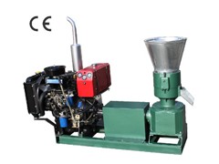 Series of flat die pellet feed machine is a machine based on circular movements, motor-driven, driven pulley to the spindle and the flat transmission mode, under the influence of the friction, pressure roller rotation, the pressure roller and laminated create friction between the temperature, powder material by high temperature gelatinization and protein coagulation degeneration, in the squeeze roller, the discharge from the die hole, through the adjustment of the cutter can be the required length of particles in the feed tray will be made by the rejection of particles by the discharge port discharge.