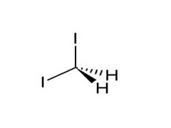 Diiodomethane or methylene iodide, commonly abbreviated "MI", is an organoiodine compund . Diiodomethane is a colorless liquid; however, it decomposes upon exposure to light liberating iodine, which colours samples brownish. It is slightly soluble in water, but soluble in organic solvents. It has a relatively highrefractive index of 1.741, and a surface tension of 0.0508 N·m−1.