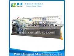KPS-III is high automatic. Compared with the machines of the same kind home and abroad, it boasts of lower investment, higher productivity, lower consumption, easier operation, automatic warning on failures, non-stopping roll re-feeding, accurate position of rotary cutting, easier maintenance and more stable performance. With the high frequency welding and the ABL laminated material or PBL laminated material, it can produce laminated tubes of all specifications with smooth and firm welded seam. Its accurate cutting makes the tubes the same length. It can be combined with our automatic shoulder-injecting machine to become an automatic tube production line that is scientific and reasonable in working in high speed and producing well products. It has the advantages of high utilization, lower labour intensity, more safety, etc. over the domestic tube machines used now.