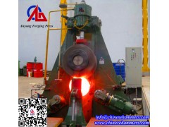 Heat the ring blank to 950-1050℃,and put it around the back-up roller,then make the rotating roller down to rolling workpiece,the thickness of workpiece decreases,perimeter extends and the hole expands.The roller stabilize and full circle in the processing.The roller begin to rotate when predefined dimension is finish,meanwhile the roller 1 up to original position,the processing is finished.