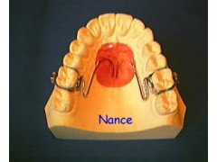 The Nance Appliance is available with either straight or re-curved arms. It can either be soldered to the bands or made removable. The Nance appliance is effective in preventing mesial molar drift, and in the re-curved arm design, used for expansion or rotation of the molars. This appliance may be fabricated in a hygienic all wire version. Note: The wire nance is not indicated for use after distalization treatments.