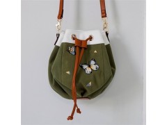 ITEM NO: BLM-160249Material: canvas Gender: Women Style: bucket bagSize is 20cm(L)*18cm(H)*20cm(W)There is one opening pockets inside I phone is availableWith string opening,Website:http://www.gzbolamay.com, lovely butterfly embroider, the mini bucket is quit.It is good for outing .