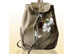 ITEM NO: BLM-160198Material: canvas Gender: Women Style: backpackSize is 30cm(L)*37cm(H)*15cm(W)There is sightless zipper pouch and 2 open pocket inside I pad is availableSell point: flower print & 2 zip pocket in both side & flap with string opening It is good for outing .