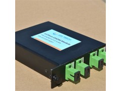 CWDM 1,Website:http://www.zgtech-solution.com, 2 Channel Optical Add/dro MultiplexerCoarse wavelength division multiplexer (CWDM) utilizes thin film coating technology and proprietary design of non-flux metal bonding micro optics packaging. It provideslow insertion loss, high channel isolation, wide pass band, low temperature sensitivity and epoxy free optical pathPerformance SpecificationsParameter 1 channel 2 channel Add dro Add dro Operating Wavelength (nm)1471, 1491 or 1470, 1490 etc.Center Wavelength Accuracy (nm)± 0.5Channel Spacing (GHz)20nmChannel Passband (@-0.5dB bandwidth) Min.(nm)≥15Insertion Loss (dB)Add/dro Ch.≤0.6≤1.2Express Ch.≤0.8≤1.6Channel Ripple (dB)≤0.3≤0.3Isolation @add/dro channel(dB)AdjacentN/A>30N/A>30Non-adjacentN/A>40N/A>40Express Channel Isolation (dB)≧13Insertion Loss Temperature Sensitivity (dB/°C )<0.005Wavelength Temperature Shifting (nm/ °C )<0.002Polarization Dependent Loss (dB)<0.10Polarization Mode Dispersion (ps)<0.1Directivity (dB)>50Return Loss (dB)>45Maximum Power Handling (mW)300Operating Temperature (°C)-20 ~+85Storage Temperature (°C)-40 ~+85Package Dimension (mm)f L100 x W80 x H10Specifications may change without noticeBlock Diagram of the One-Channel OADMBlock Diagram of the Two-Channel OADMOrdering InformationCWDM Configuration 1st Operating Wavelength 2nd Operating Wavelength (for 2CH) Fiber Type Fiber Length Connector 1=1 Ch Add/Drop2=2 Ch Add/Drop27=1270nm 29=1290nm ……47=1470nm49=1490nm