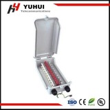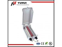 Box Details:1. Outdoor DP Box Plastic for STB Modules 10 pairs2. Material: PC,Website:http://www.ftth-network.com, with steel rails.3. Cable grommets for wire entry and exit is for waterproof.4. For subscribe connector unit protection over voltage 5. With lock6. Application: Outdoor or indoorDescription:Material: PC, ABS, with steel rails.Empty distribution box for 2pair dro wire module (STB module), offering good connection environment for telecommunication.The similar DP box for telecommunication consists for 1pair, 2pair subscribe connector, 4pair STB module distribution, 10pair subscriber terminal box and 20pair subscriber termination box.Application for replacing Tyco VX-SB subscribe connector unit terminal blocks, Connecting 1 pair module without protection, module with surge protection (gas-discharge instrument with surge protection to 230V) and module with overvoltage and overcurrent (overvoltage to 230V, and by two resistors PTC, which protect from the overcurrent).The subscriber connector termination box consists of a rectangular box base with a cover and the connection module secured to the base. The top and base are hinged together, and the top is easily removable to facilitate working in cramped conditions. The cable grommets for wire entry and exit may be adjusted to conductor size and are also removable. A metal screw is provided for grounding purposes.The different function subscriber connector was definitely distinguished by the color .We can offer the other two types subscriber connectors for your selection:The STB module with grey plug-in module is for without protection.The STB module with orange plug-in module is for with protection both over voltage and over currency, with both 3pole arrester and PTC inside.Applications:Subscriber Connector Unit VX-SB for telecom outside plant. The connection of an outdoor to an indoor dro wire. It allows for circuit testing in both network directions. The box provides environmental protection. For mounting to walls, wood, metal or concrete poled.Specifications:Outdoor waterproof Distribution Box: The type of STB module is required as your application.-G is for YH-5027 unprotected,-R is for YH-5028 with GDT protection,-O is for YH-5029 with GDT and PTC protection.Standard with expansion bolt for wall mounted. The accessories for pole mounted is on requirement.Item NoDescriptionYH-3010-11pair DP box for STB module (EMPTY) 95*45*50mmYH-3010-1G1pair DP box with STB module(YH-5027) 95*45*50mmYH-3010-1R1pair DP box with STB module(YH-5028) 95*45*50mmYH-3010-1O1pair DP box with STB module(YH-5029) 95*45*50mmYH-3010-22pair DP box for STB module (EMPTY) 145*95*75mmYH-301110pair DP box for STB module (EMPTY) 195*195*85mmYH-301220pair DP box for STB module (EMPTY) 350*190*95mmModule Details: 1, Material: PBT or ABS (UL94V-0)2, Contact: Phosphor Bronze3, 5 pole connection4, For Customer Wire (CW) and dro Wire (DW) Connection5, The plug can be with 3point protector (color red) and 5point protect (color orange), if without protection the color is grey6. Available to install this dro wire module into STB Distribution box.7, 100% test passed, arrester voltage usually for 230V, it can be on your requirement.Description:1pair STB Module without Protection Subscriber Connector Unit VX-SBThe STB module (1 pair dro wire connection module with protection) provide a connection point between an exchange-side cable pair and a distribution pair for telecommunication equipment. It incorporates a 5-point plug in module to provide continuity and a range of other options.Removal of the plug-in module does not disturb wire connections but makes contacts to them available for testing of both sides of the telecommunication network.The STB module (1 pair dro wire connection module with protection) is especially recommended for:1. Outdoor connections where the environment conditions are extremely atrocious to protect telecommunication equipment and circuitry line.2. Terminations where user development characteristics require future flexibility in terms of the type of protection or filtering capabilities. Offering box with capacity from 1pair to 20pair for application.ORDERING INFORMATIONItem no. DescriptionYH-5027 dro wire (STB) module without protection, Grey PlugYH-5028 dro wire (STB) module with GDT protection, Red PlugYH-5029 dro wire (STB) module with GDT and PTC protection, Orange PlugApplications:The subscriber connector unit is used for the connection of an outdoor to an indoor dro wire. It allows for circuit testing in both network directions. The box provides environmental protection. The product is specially recommended for aggressive environmental conditions, terminations where future requirementsmay include different types of protection.Specifications:Mechanical PerformancePlastic material: ABS&PBT(UL94V-0)Contact material: Phosphor Bronze.Surface Plating Silver(0.5um-5um)Earth bar: Phosphor Bronze. Surface Plating nickelEnvironment CharacteristicStorage Temperature: 40 to 70°COperating Temperature : 10 to 60°CRelative Humidity: 95%, non-conditionElectrical PerformanceInsulation resistance: 1000 Mohms minimumContact resistance :5 mohms maximumDielectric intensity: 1200V DC 60s can't spark over and haven't fly arc