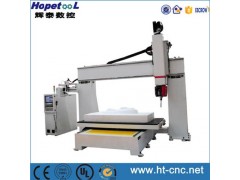 Jinan Hopetool CNC Equipment Co.,Ltd is one of the leading China 5 axis cnc router manufacturers and suppliers,Website:http://www.htcnclaser.com, welcome to check 5 axis cnc router price with us.5 axis CNC routerProduct DescriptionApplications1. Mold industry: various large metalloid mould, especially suitable forautomotive foam mold, wooden ship model, wooden model aviation, railwooden mould, wooden mould train.2. Instrument industry 3-d surface engraving and shape cutting of large-scale instruments.3. Sign, plastics, wood, molds, etc.4. Furniture, general woodworking manufacturing.Feature1. Italy OSAI controlling system, steady performance, powerful function,easy operation2. Well-known Italy HSD air cooling spindle, high precision, long life time, steady working3. Well-designed whole cast steel lathe bed, well welded, no distortion for whole structure.4. Adopt Japan THK linear square guide rail system, working steadily, high precision, long life time.5. Movable table structure, working more steadily than that with moving gantry, especially while engraving waved plate.6. Diversified controlling. It can control working speed, air line speed and cutter setting speed separately which improves both processing quality and efficiency.7.6 pcs Auto tool changers.Technical Parameters