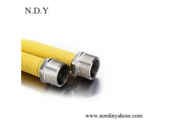 Description for Hose:Flexible PVC Coated metal Gas hose is made by corrugating stainless steel thin wall pipe,Website:http://www.nordinyahose.com, which coated by PVC outside, with good flexibility ,high strength, heat resistance and pressure tightness. It’s can be used to convey most kinds of fluid those are gaseous, such as gas, air, steam, etc. and liquid such as water, oils, chemicals, etc.,which have functions to absorb reciprocated motion, thermal expansion, vibration, and misalignment of piping.Features:1) Connects firmly2) Corrosion resistant3) Does not jam gas4) Has long performance life5) High flexibility6) Can be bent freely7) Reliable8)The yellow PVC coating make the hose more attractive and easy to washSpecifications:1) Sizes: 1/2" 3/4" 1"2) PN: 0.5Mpa3)Inner Diameter:12mmOuter Diameter:18mm4) Ripple: Dense Annularly Corrugation5) Wall Thickness: 0.2mm6) Hose Material: SS3047) Airproof: Rubber gasket8) Bend times: 2009) Length: 200-400mmMore Details of Hose: