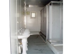 Description of prefabricated container bathroomsThe prefabricated shipping container homes can be used for prefabricated container bathrooms and container toiletMain features of prefabricated shipping container homes1.Fast installation, ready-to-useprefab container house can be installed in 1-2 hour. It is out-of-the-box and ready-to-use solution. Modules and components are connected by joints; anyone can install it easily with our product instruction. We also provide further and detailed technical and on-site installation support for any problem you may encounter.2.Comfortable and safe - build your nice and sweet homeprefab container house is strong and durable with excellent property of anti- heat, wind, vibration, humidity, water; can even deal with M8 earthquake and hurricane easily. With additional support of solar photoelectric product, solar water heater and household appliances, you could make your prefab container house to be a warm and cozy home.3.Economical and low-cost - average cost per day is less than 1$prefab container house can be used more than 20 years, you average cost per day is less than 1$.4.Movable, reusable, flexible - you can live anywhere you likeMoving around is easy without touching any of your furniture, a truck or a forklift can do the entire job.Materials of prefabricated container bathroomsname 30ft Prefabricated container bathroomslength 9000mmWidth 2438mmheight 2791mmSteel frame Material:Q345 steel:thickness 3-4mm Floor support:3mm thickness steel tube Surface working:sand blasting,epoxy basic painting 55mm, Final vinyl acrylic painting 55mm thick Forklift opening:size 100*250,distance is 1200mmRoof Outside steel:1.2mm steel sheet kneel:2mm thickness steel purlin Insulation:80mm thickness fiber glass Ceiling:8mm thickness OSB board pvc ceilingFloor Floor bottom board:0.4mm thickness steel sheet Keel:2mm thickness steel purlin Insulation layer:100mm thickness fiber glass Plywood+1.5mm floor leatherWall Wall panel:75mm thickness sandwich panel (alternative insulation material:PU,EPS,rock wool)Electricity system Double tube fluorescent light(usually 2pcs) Distribution board: 1pcs Socket:16A(usually 2pcs) Electric wire:three color wiring voltage:110-220v,50-60hzTechnical parameter House load:bearing max load capacity 2.0kn/m2(200kg/m2) Wind load:210km/h Compression capability loading:150kg/m2Plan of 30ft prefabricated container bathInstallation of prefabricated container bathroomsPacking&delivery of prefabricated container bathroomsPacking1.width 2.3-2.6m,all components flat packed,one 40HQ container can load 7 units2.Width 2.25m,the wall,window,door flat packed between the roof and wall panel to make a box.one 40HQ container can load 8 units this kind boxLead time:15-45 days Our companyLaizhou Hongshengda Machinery Co., Ltd. ,belongs to Lazhou Construction Group, is a professional container house,prefabricated house,steel structure warehouse etc manufacture.as government owned company and alibaba 8 years golden supplier,we have very strict quality and cost control system.our houses have been sold over 100 countries for good quality and competitive priceOur staff style Our certificates