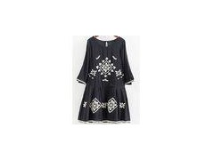 A Line Neck Embroidered floral dress XS-XXXL 100% handmade cottion mini dress