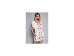 - Rounded neckline - Floral embroidered front - Mesh overlay - Simple short sleeves - Zip back fastening - Fit and flare design - Mini length |