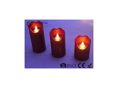 rustic finish double light moving flame led candle set of 3 with colorful matt painted