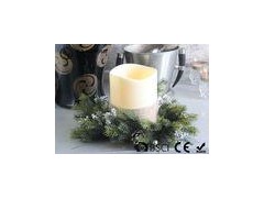 Natural rope deco. ivory plastic led candle with pine needle wreath set