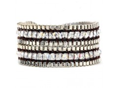 2017 Crystal And Box Chain Bracelet Woven Leather Beaded Wrap Bracelets For Women,Two Wrap Bracelet