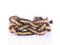 2017 Gold Jewelry Mens Handmade Woven Leather Copper Beads 3 Wrap Bracelets,Three Wrap Bracelet