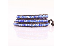Women Jewelry Fashion Colored Glaze Blue Evil Eye Beads Wrap Leather Bracelets,Three Wrap Bracelet