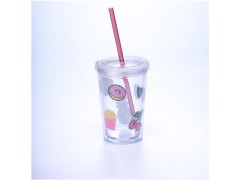 Double Wall Plastic Cold Cup With Lid And Straw,Website:http://www.jasslife.com, 10-Ounces,Plastic Cup
