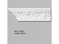Crown Molding Trim with Rose Design is designed with beautiful rose on the surface, it is designed specially for large hall, hotel,house.etc big rooms,we have designed External Corner(CC093-21) and Internal corners(CC093-23) to match this Architectural Mouldings .
