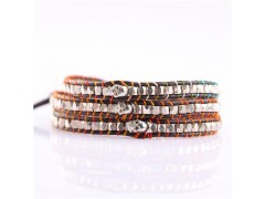 White Gold Plated Copper Beads And Alloy Skulls Mens Leather Wrap Bracelet 2017,Three Wrap Bracelet