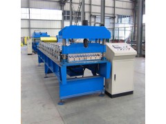 This Corrugated metal Plate Roll Forming Machine is the special equipment for continuous rolling and cold-forming on steel sheet. Corrugated metal Plate Roll Forming Machine adopts coiling steel sheet as the raw material, decoiling, continuous rolling and cold-forming, automatically cut to the size and specification which required, and stacking the finishing panel automatically. The Corrugated sheet roll forming machine adopts PLC control, AC frequency and adjusting the speed technology, and it realize the continuous automatically production, therefore, it is really a new type of energy-saving and high-effective producing equipment for steel structure.