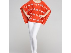 Fashionable Bow Jacquard Design Sweater Batwing Shape Wool Blend For Spring Summer,Women Loose Fit Knitted Pullover