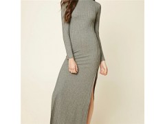 Sexy Slit Slim Casual Dress Bodycon Ribbed Sweater Women In Spring Autumn,Women Knitted Dress