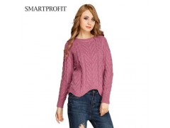 Latest Braids Pattern Knitted Jumper Sweater Bulky New Design Long Sleeve Waving Bottom,Women Knitted Pullover With Cable