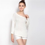 Sexy Cold Shoulder Oversized Pullover Loose Fit Deep Neck Sweater In Summer,Women Loose Fit Knitted Pullover