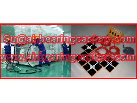 Air casters rigging systems also named air casters, air bearings, air powered moving equipment, air rigging systems, air skates, air movers, air skids kit, air bearings transporters, air bearings movers, air pallet, pneumatic scissor lifter and so on names.