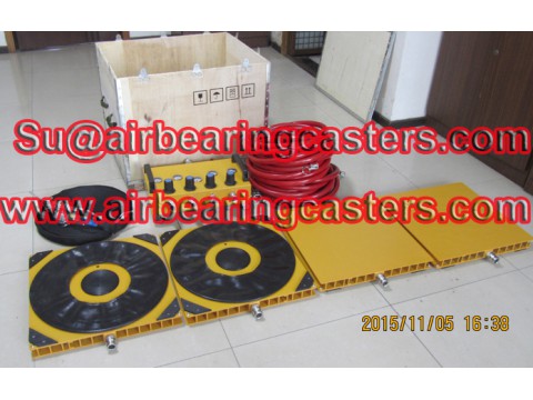 Air pads for moving equipment is a kind of great rigging equipment for moving heavy loads, consist of four or six air bearing load modules, interconnecting air tubes and one set of control box to regulate every air skates station balance uneven loads. 48T air bearing casters, six air modular air casters