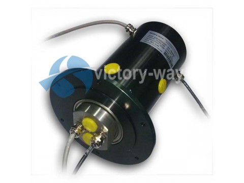 HS-FA2X1/2-S24-SF hybrid slip ring is designed to setup at the end of shaft or side of the machine, fit to pass fluid +signal or low current power. It is set in the body of rotary joint, the wire of rotor will lead out from the center. Stator side has flanges for setup.