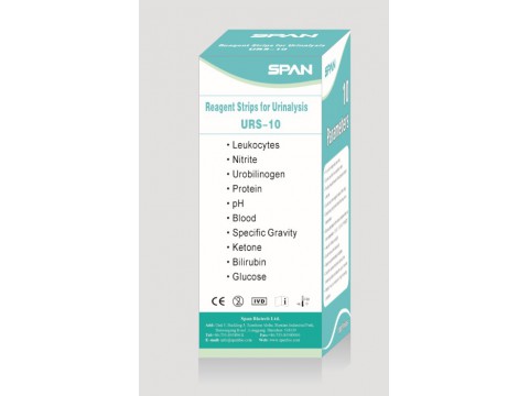 The Urinalysis Reagent Strips (Urine) are firm plastic strips onto which several separate reagent areas are affixed. The test is for the detection of one or more of the following analytes in urine: Ascorbic acid, Glucose, Bilirubin, Ketone (Acetoacetic acid), Specific Gravity, Blood, pH, Protein, Urobilinogen, Nitrite , Leukocytes and so on.