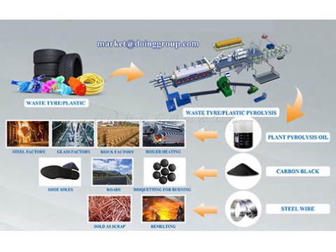 The environmental pollution caused by plastic waste has been widely concerned by the world. Whereas waste plastic pyrolysis plant can provide an opportunity to collect and process plastic waste in the most environmentally friendly way. Moreover, during this processing, plastic waste can be converted into fuel oil and carbon black which can be used in many industrial fields. After years of research and development, Doing Group has mastered the advanced pyrolysis technology and designed environmentally friendly and efficient waste plastic pyrolysis plant.