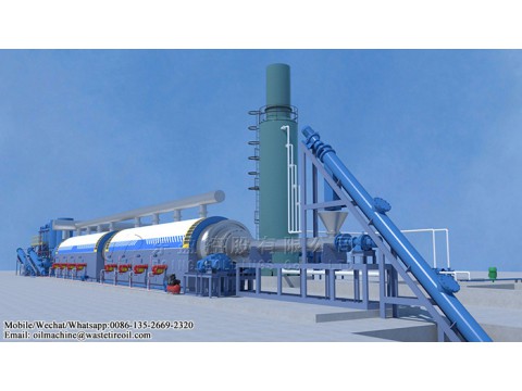 Fully automatic continuous waste tire to oil plant is mainly used to convert waste tires into fuel oil, carbon black and steel wires, and its main components include tire crusher, auto-feeder, pyrolysis reactor, condenser, carbon black discharging device, tail gas cleaning and odor removal system, flue gas cleaning system.