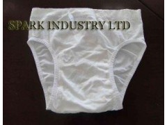 This circular knitted, highly stretchable and breathable seamless fixation pants are used to keep the shaped diaper pads or maternity napkins in place to avoid side leakages for incontinence people, maternity and post maternity women, babies and kids.