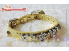Highly Quality Leather And Slide Crystal Letter And Charms Personalized Dog Collar