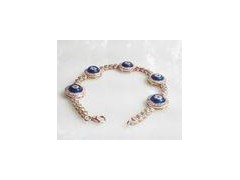 Trendy Ladies Evil Eye Jewelry Dark Blue Gold Plating 7 Inch Silver Bracelet