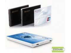 | Product Name: Super thin Mobile power Product Model: AGE-YDDY001 Material: Plastic Logo Printing Option: Supported Battery Type:Li-Pol Capacity: 2000mAh Input: 5V/500mA Size: 90*57*8mm Weight: 58g Hotline: 86-755-89315556 Email: info@asia-gtech.com |