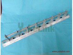 Feature: Yokelink secondary rack have a curved back which fits the pole. Insulators should be ordered separately. All components are Hot dip galvanized to meet ASTM A153 specification.