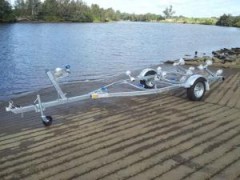 Galvanized frame, roller or skid rail version, 13 inch galvanized wheels, new tyres, mud flaps, step on guards, LED submersible lights, web strap winch, swing up jockey wheel